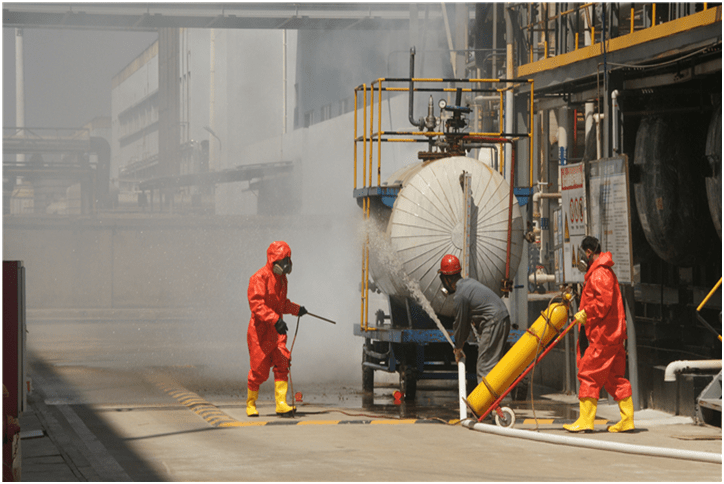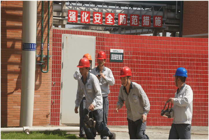 9:35, Zhou Liejun rushed to the scene in the office after receiving the call, on-site command Tang Chengwen and Zhou Zhiyuan wearing chemical suits called empty scene, ask Yang Hua to inform and assist the evacuation of 205 workshop, a notice of the comprehensive department make bright hole and organizing the evacuation workshop.