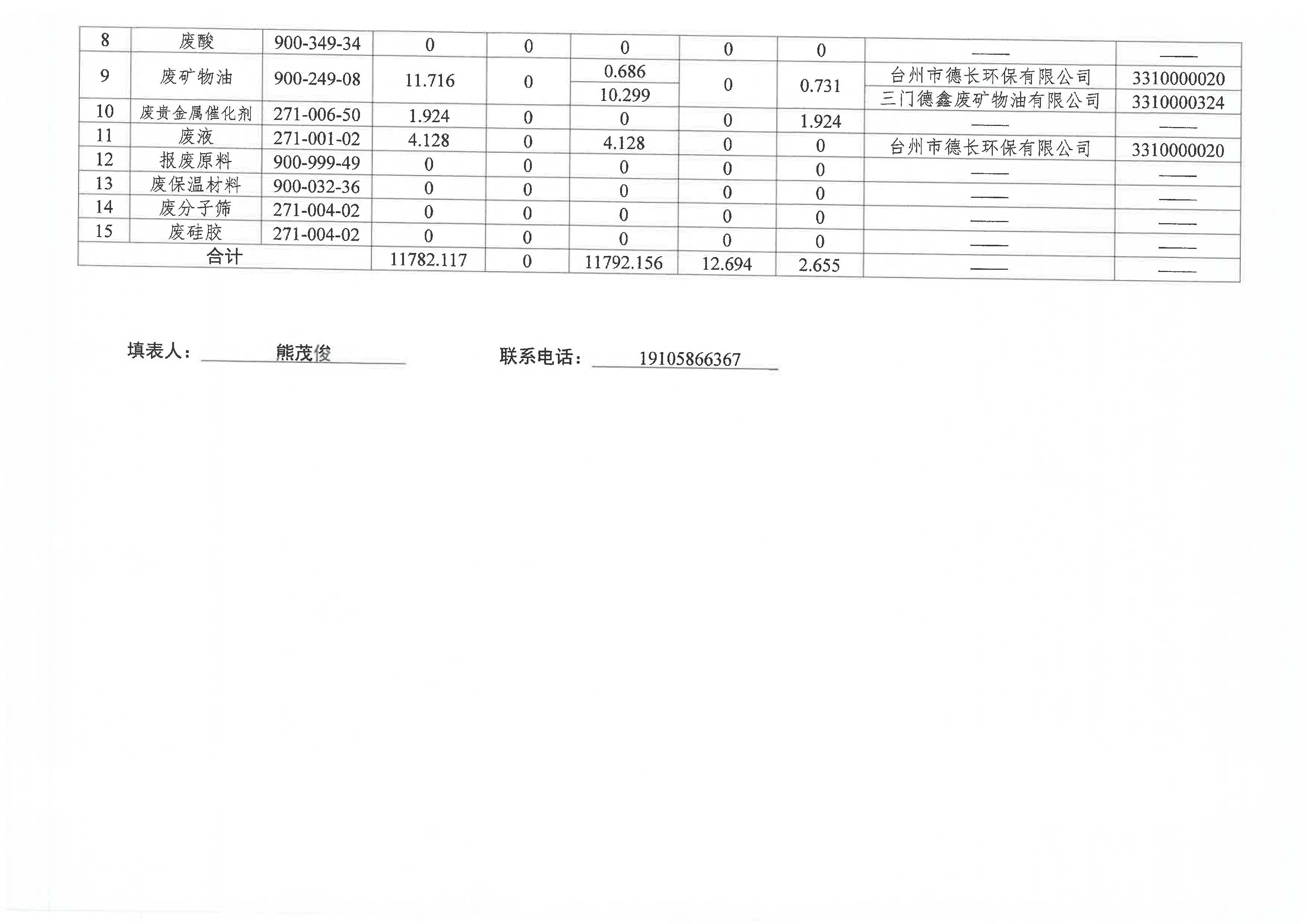 2024年度危險(xiǎn)廢物管理臺(tái)賬統(tǒng)計(jì)匯總表