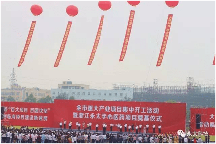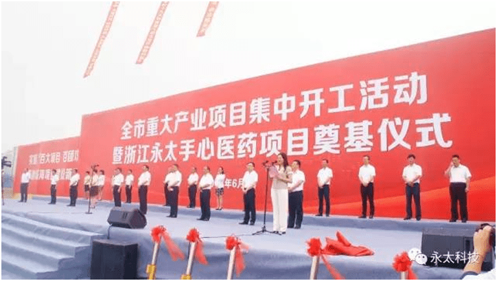 2017年6月7日,浙江省化學(xué)原料藥基地臨海園區(qū),歡快的音樂(lè)與抖擻的彩旗在永太手心和永太藥業(yè)飄揚(yáng)。今天,永太科技雙喜臨門,永太手心原料藥項(xiàng)目奠基及永太藥業(yè)制劑國(guó)際化項(xiàng)目竣工投產(chǎn)兩個(gè)里程碑事件同日舉行慶典活動(dòng)。