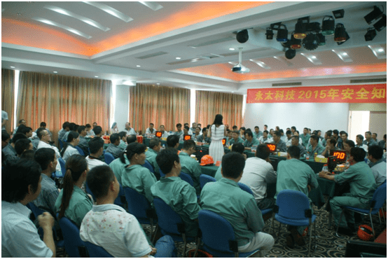 2015年6月17日下午1點(diǎn)在總部四樓會(huì)議室舉辦了《安全生產(chǎn)月》永太科技安全知識(shí)競(jìng)賽,由車間一線人員共11支競(jìng)賽隊(duì)伍登臺(tái)競(jìng)技,以安全知識(shí)論英雄,以安全實(shí)力爭(zhēng)高低,以能力提升促安全。王董親臨競(jìng)賽現(xiàn)場(chǎng),羅總,武總,張總,龔經(jīng)理?yè)?dān)任評(píng)委,并得到生產(chǎn)中心、采購(gòu)中心,財(cái)務(wù)中心,管理中心等部門的大力支持,與近百名職工一起為選手喝彩鼓舞。