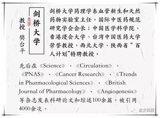 劍橋大學(xué)藥理系樊臺平教授一直致力于中醫(yī)藥的研究與推廣。現(xiàn)場,他對中醫(yī)藥的研究前沿與進(jìn)展作了深入淺出的報告,介紹了當(dāng)前國際上在中醫(yī)藥相關(guān)領(lǐng)域的研究概況,探討了人參、丹參、三七、當(dāng)歸等中藥對血管生成的影響,并揭示了人參皂苷具有的雙向調(diào)節(jié)血管生成的作用,讓大家對中醫(yī)藥的原理和功效有了基本認(rèn)知。